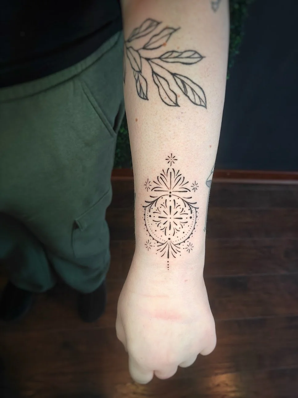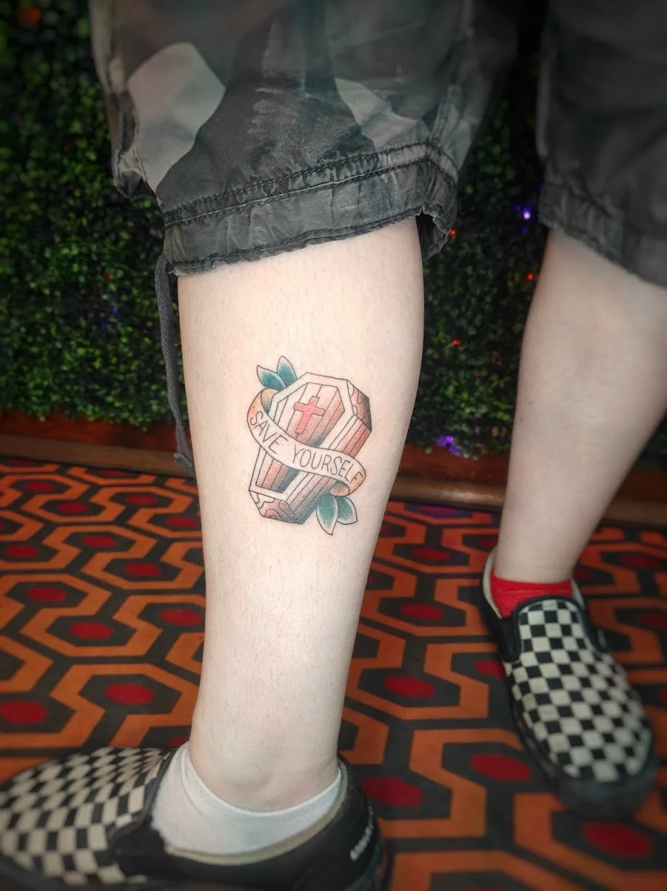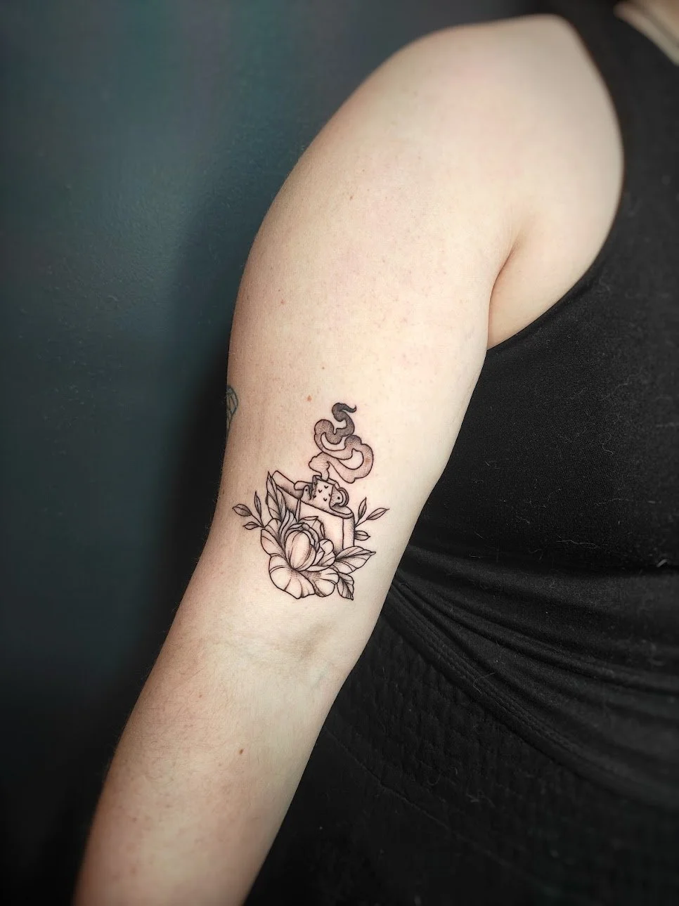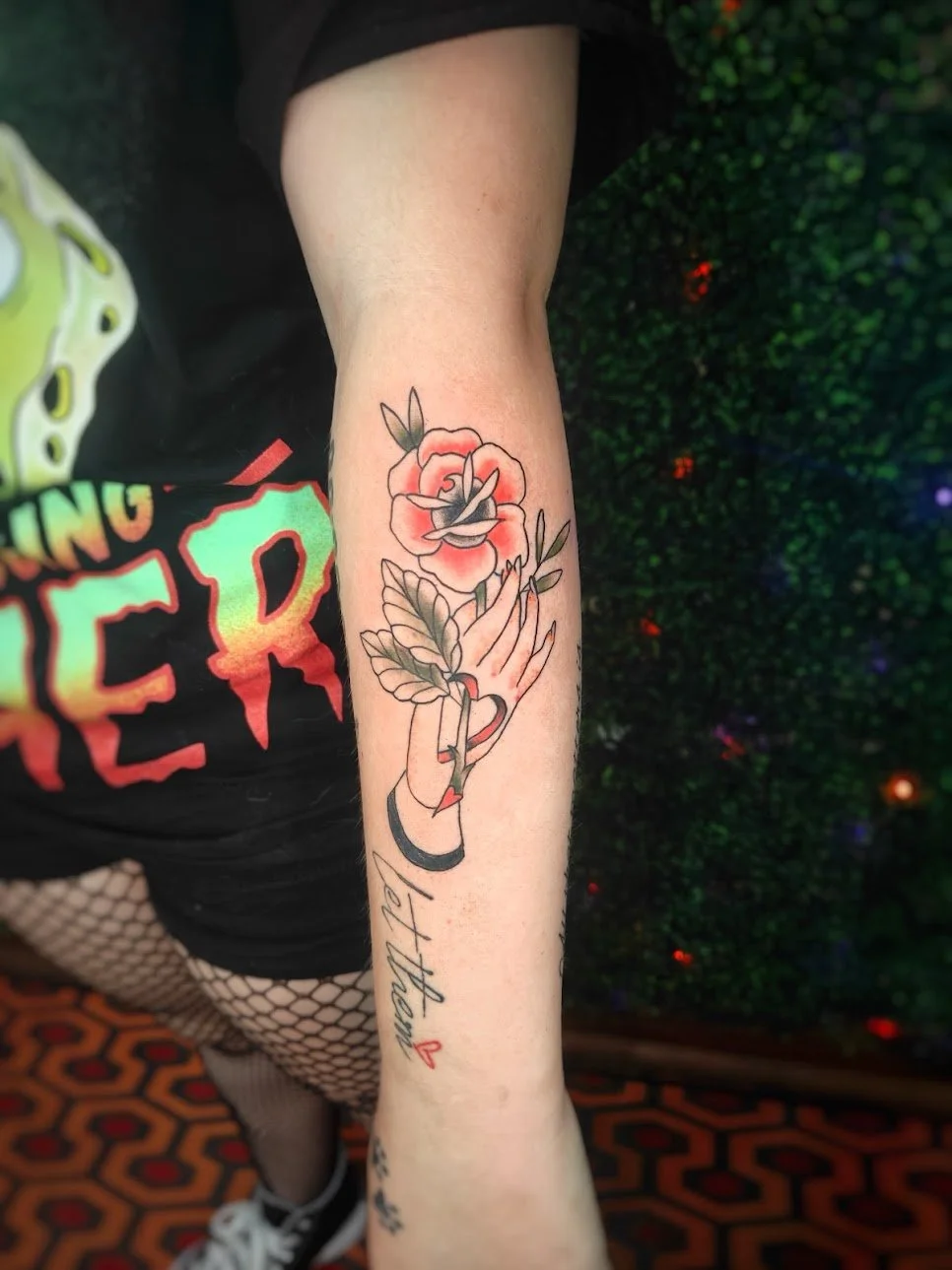 About me: I started tattooing in July of 2019 and fell in love with illustrative tattoos—bold, creative designs that tell a story and bring ideas to life. In January 2025, I became the proud owner of the studio, which is queer-owned and built to be a safe, welcoming space for everyone.